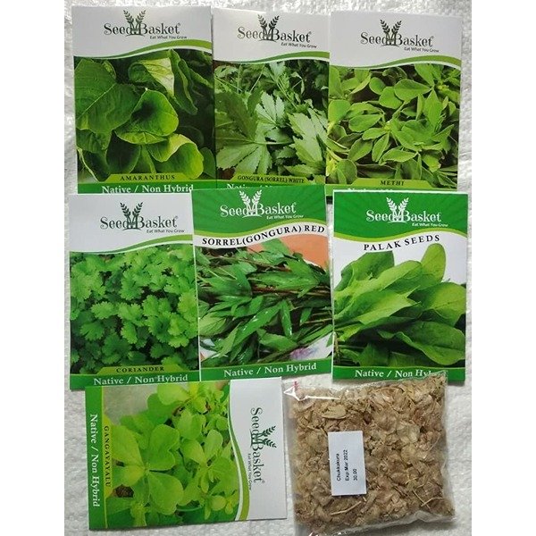 • 8 Verities of Desi/Native Leafy vegetable seeds from Seedbasket with total seed count-4800