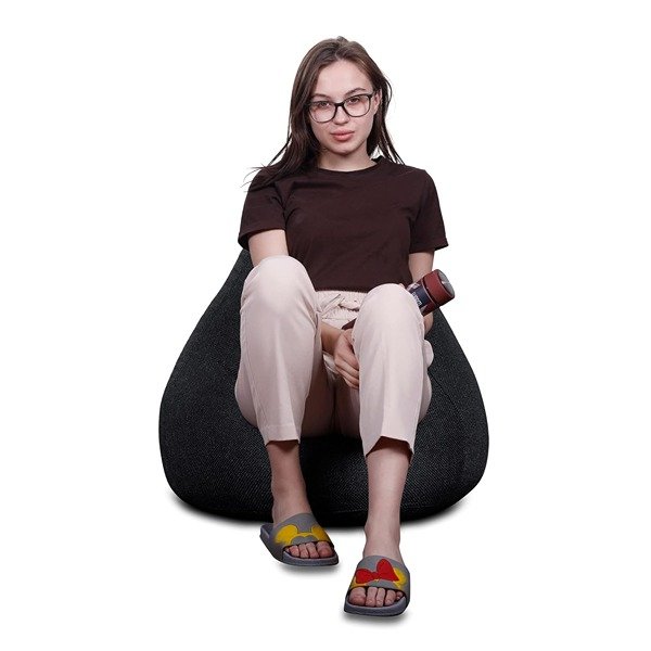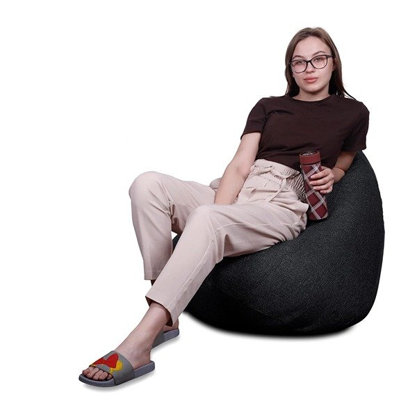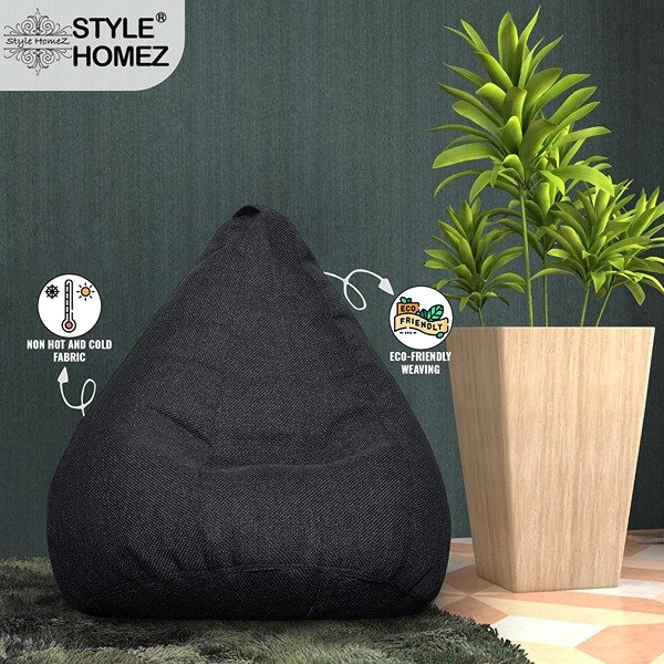 Classic Bean Bag XL Size Black Color in Organic Jute Fabric, Cover Only Lounge Bean Bags