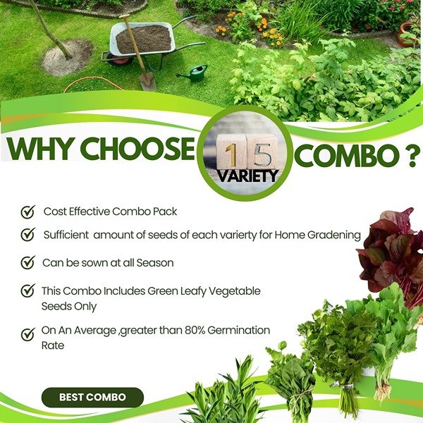 Green Leafy Vegetable seeds|15 Varieties | 150 g| Home Garden| Perfect for Home Gardening|Each Packet 10g |15k+ Seeds| Best Germination| Grow All Season |