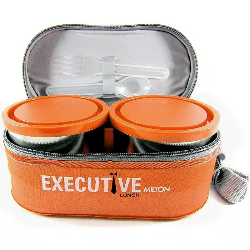This set of lunch boxes by Milton comes with two forks and spoon. These are made of strong plastic. The cover bag also has a particular space for this equipment.
