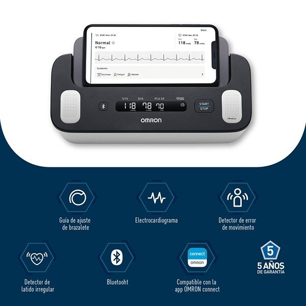 Omron Complete ECG Machine + BP Monitor Built in Bluetooth Technology; AFib, Tachycardia, Bradycardia & Hypertension Monitoring