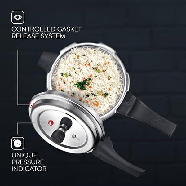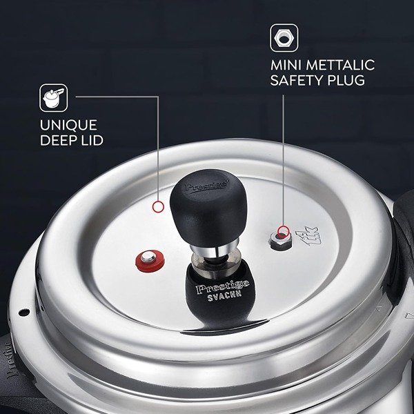 The revolutionary pressure cooker comes with a unique deep lid with spillage control designed to prevent froth from flowing down the cooker.