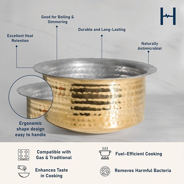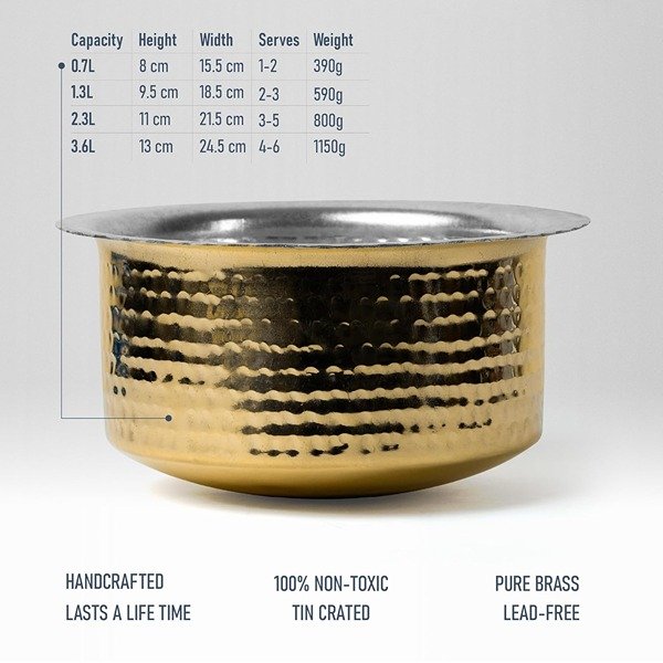 - Pure Brass for Superior Cooking Performance: Crafted from pure brass, this patila for cooking ensures exceptional heat distribution, making it perfect for preparing flavorful meals like curries, stews, and biryanis.