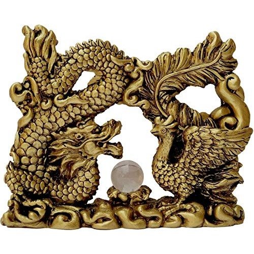 Resin Feng Shui dragon And Phoenix With Crystal Ball, Standard, Golden