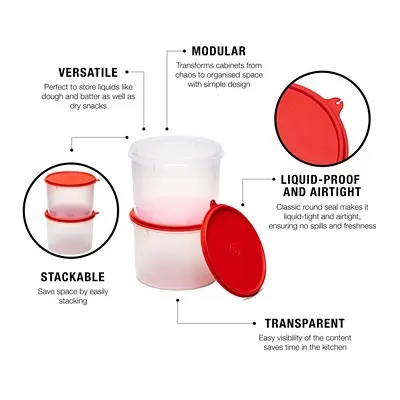 Special Feature Transparent window for easy identification of the food stored within, Ergonomic design allows for easy stacking to save space on a kitchen shelf or in the refrigerator, Circular lid that is virtually airtight keeps moisture out and preserves the freshness of food for longer, Wide tab on the lid allows for easy opening and closing, Matt finish bottom prevents slipping of the storer and is scratch and fingerprint resistantTransparent window for easy identification of the food stored within, Ergonomic design allows for easy stacking to save space on a kitchen shelf.